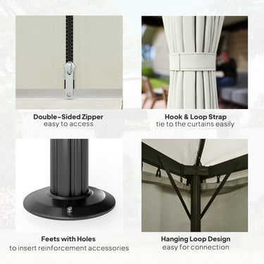 Imagine yourself relaxing outside in the beautiful summer weather. Sun is shining, a drink is in your cup. Wait, that sun though, it's really warm... next thing you know it's far too hot and you're back inside. That is, of course, unless you find yourself in the protective cover of an Outsunny outdoor 10' x 10' patio gazebo. It's just you, your friends and family, this patio gazebo, and some fine times spent enjoying the great outdoors in your own personal oasis.