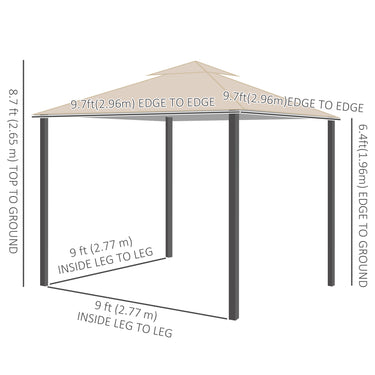 - • 10' x 10' outdoor gazebo canopy tent with a 9-foot tall peak