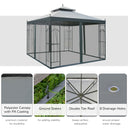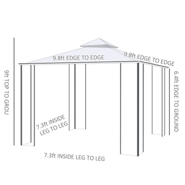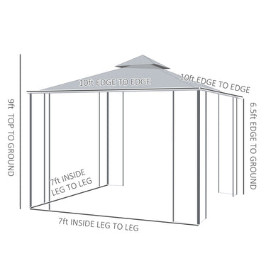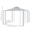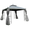 Outsunny 10' x 10' Steel Outdoor Patio Gazebo Canopy with Removable Mesh Curtains, Display Shelves, & Steel Frame, Grey