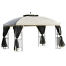 Outsunny 12' x 10' Outdoor Patio Gazebo Canopy with Double Tier Roof, Removable Mesh Sidewalls, Triangular Display Shelves, Beige