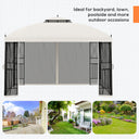 This outdoor double roof gazebo with a simple and classic appearance is your best choice to relax and enjoy parties. The practical polyester canopy and steady steel frame create a comfortable and openable space. Its suitable sizing provides enough shelter for yourself and several other people. You can set up this gazebo in the garden, have a nice gathering with friends or family. You and your family, friends deserve some comfort in the sun: create your own personal oasis with our patio gazebo.