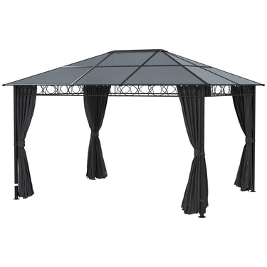 Outsunny 13' x 10' Polycarbonate Hardtop Gazebo Canopy, Outdoor Patio Gazebo with Aluminum Frame & Curtains, Dark Grey