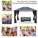This outdoor gazebo is the optimal choice for relaxing and enjoying parties. The polycarbonate hard roof provides UV protection, and double-sided zipper curtains create a comfortable space. Its large size provides enough shelter for yourself and several other people. You can set up this metal gazebo in the backyard or poolside and have a nice gathering with friends or family. Let this practical gazebo improve your happiness and quality of life.