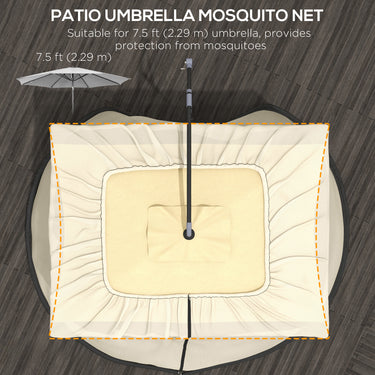 Outsunny 7.5FT Umbrella Table Screen Mosquito Bug Net, Garden Large Umbrella Cover Netting with Zippered Door, Beige