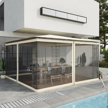 Outsunny Replacement Mosquito Netting for Gazebo 13' x 13' Black Screen Walls for Canopy with Zippers for Parties and Outdoor Activities, Cream White