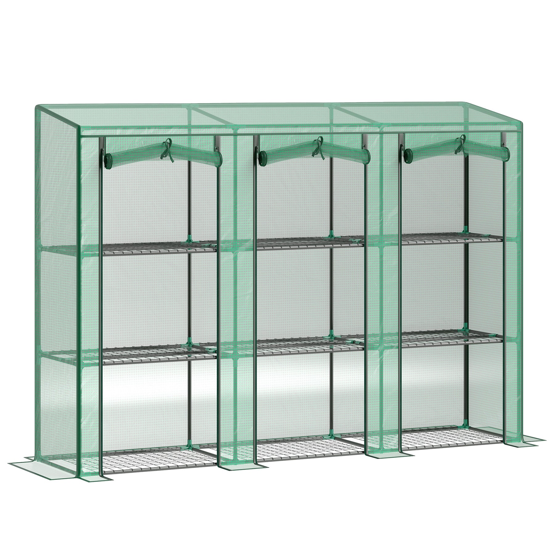 Transform your gardening with the Outsunny Greenhouse! This three-tiered indoor green house offers ample space for flower pots and seed trays, enveloped by a 140g/m² PE cover that shields plants from UV damage while bathing them in sunlight. Plus, the roll-up zipped doors ensure easy access and optimal ventilation. Great for any small greenhouse enthusiast looking to create a lush portable garden oasis!