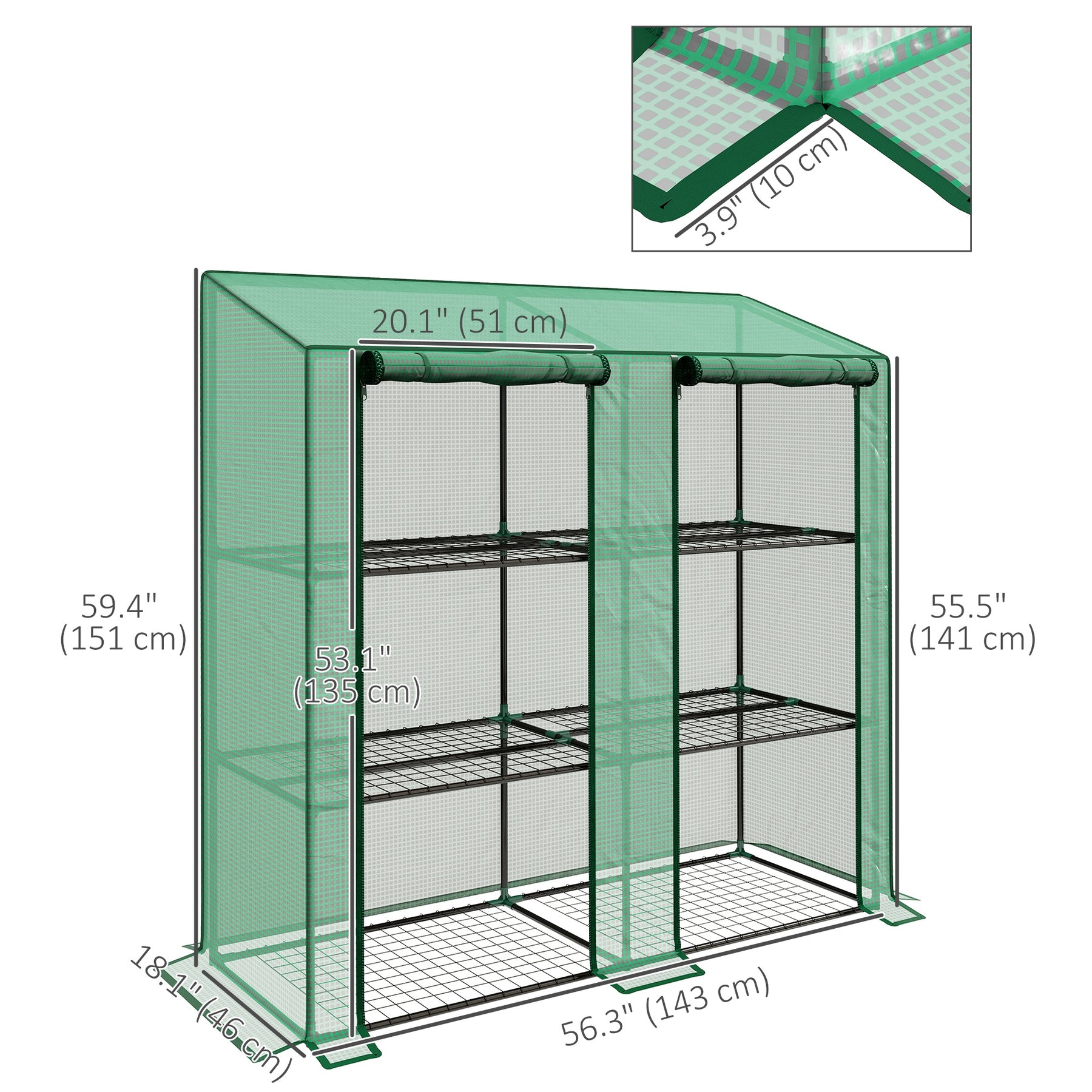 No more worrying about your carefully kept plants and flowers freezing! Outsunny provides a mini greenhouse with a three-tier flower stand that offers a spacious solution for gardeners of all levels. PE cover with two roll-up doors create a desirable temperature and humidity for plants to grow. A pent roof to prevent water accumulation. Embrace the art of horticulture with the Outsunny mini greenhouse.