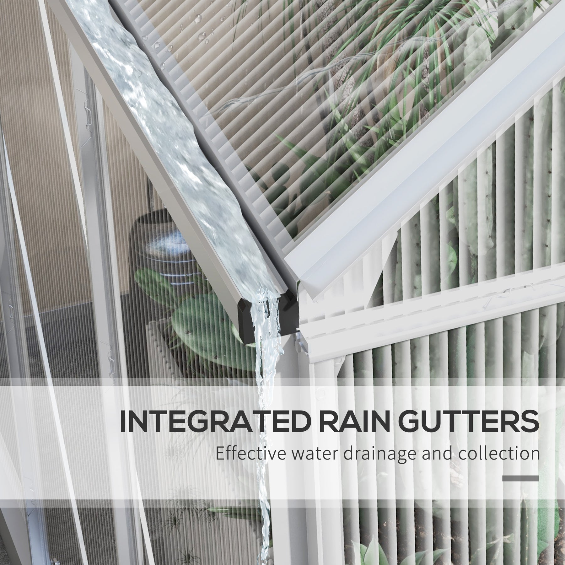Experience the magic of greenhouse gardening with the Outsunny polycarbonate greenhouse, which provides optimal light transmission and insulation against harsh weather. The spacious interior and robust aluminum alloy frame accommodate plants of all sizes. An adjustable roof vent and a sliding door offer control over ventilation and humidity, providing easy access. Invest in the Outsunny greenhouse for your backyard and enjoy fruitful harvests in your garden oasis.