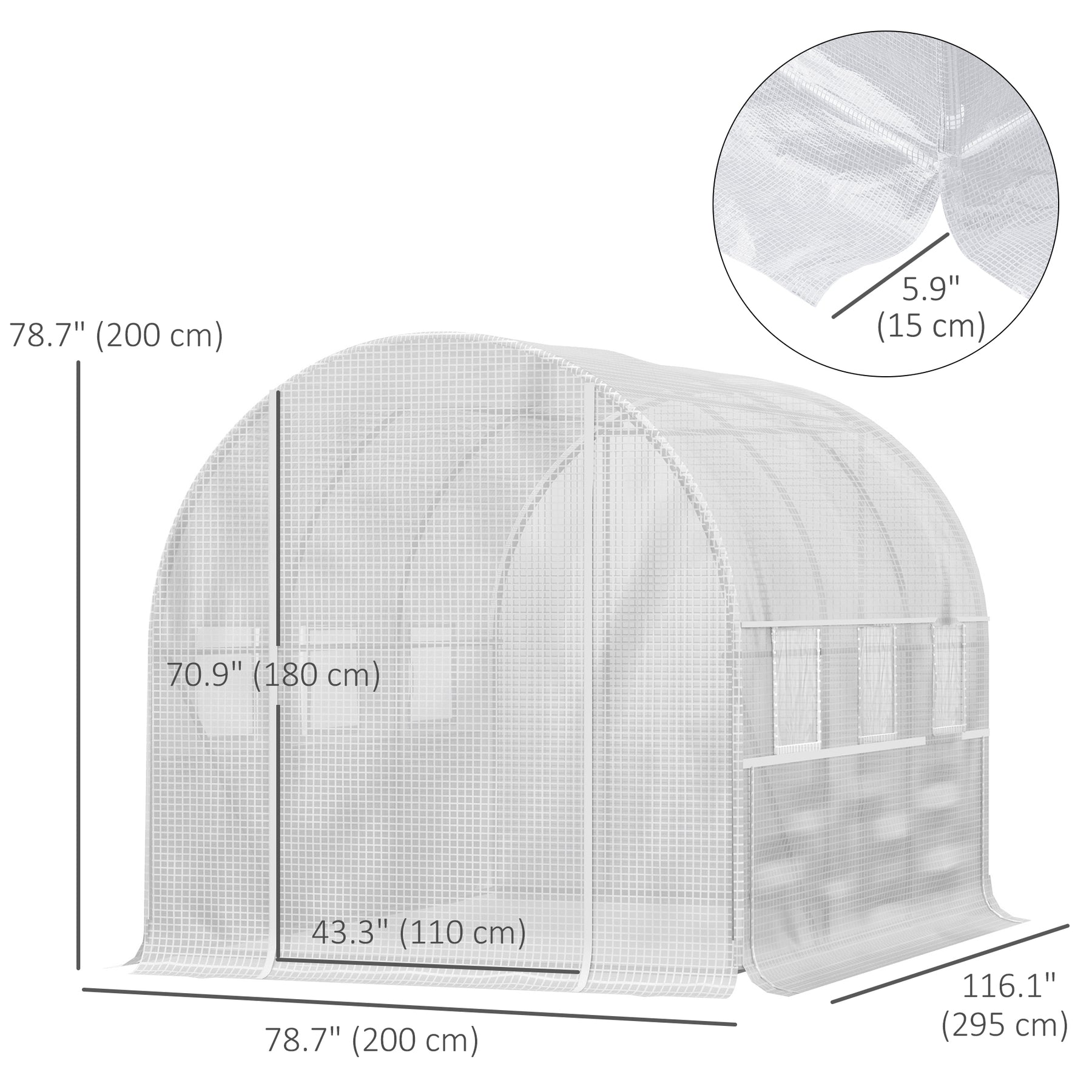 This Outsunny garden greenhouse is perfect for the home gardening! The plant greenhouse offers all the protection your plants need to thrive. The steel frame and PE cover of the backyard greenhouse will keep your plants secure. The windows with interior netting of the hot house offers an excellent ventilation, while convenient roll-up doors design provides easy access to the inside. Our Outsunny large greenhouse is the ideal solution for keeping your plants happy and healthy throughout the year.