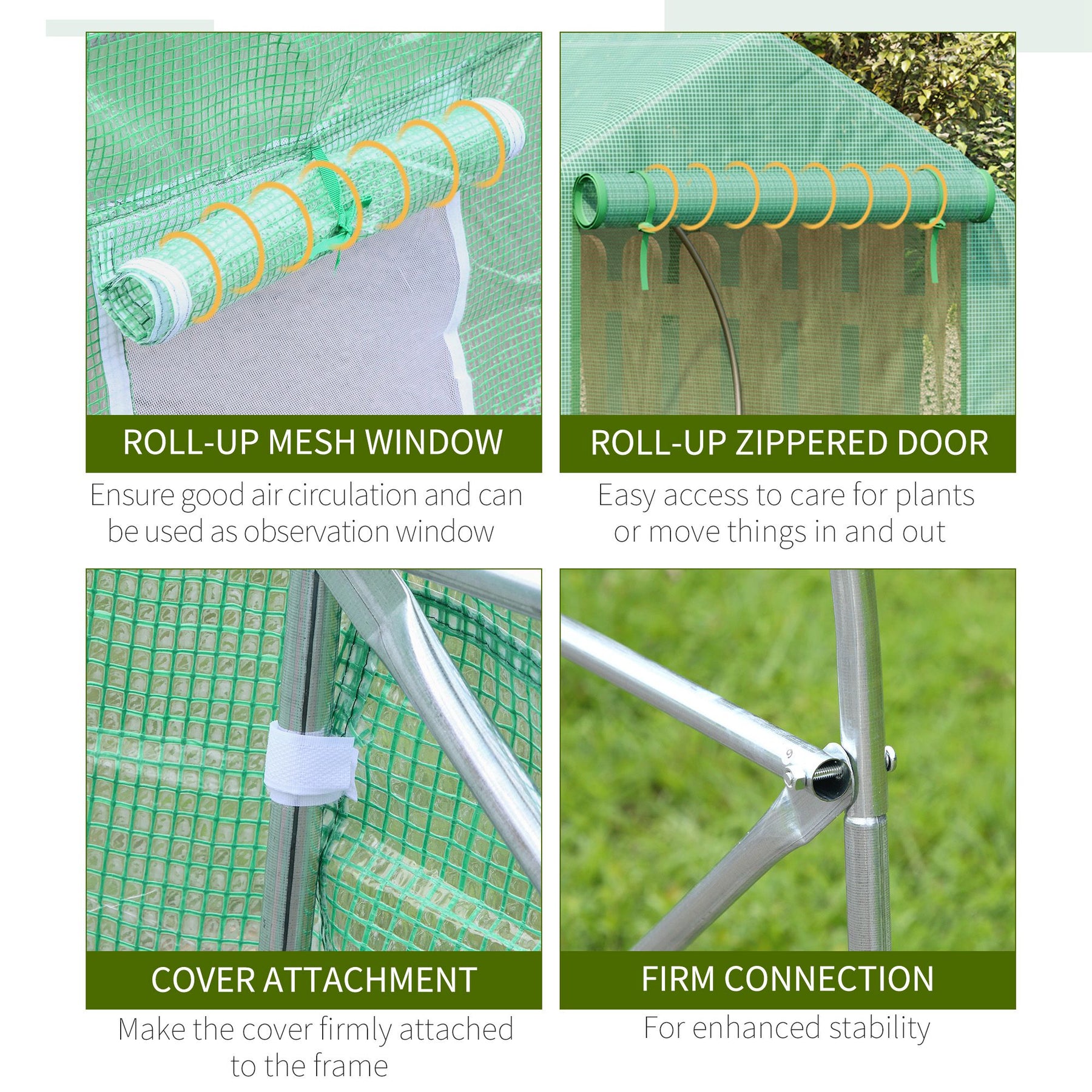 Are you a home gardening enthusiast? This Outsunny outdoor greenhouse offers the vital protection your plants crave. The cover of the large greenhouse keeps your crops at the perfect temperature and is reinforced by a sturdy powder-coated steel tube frame.The zippered door on the outside of the heavy duty greenhouse allows a seal to be maintained while also providing easy access to the greenhouse tent inside.