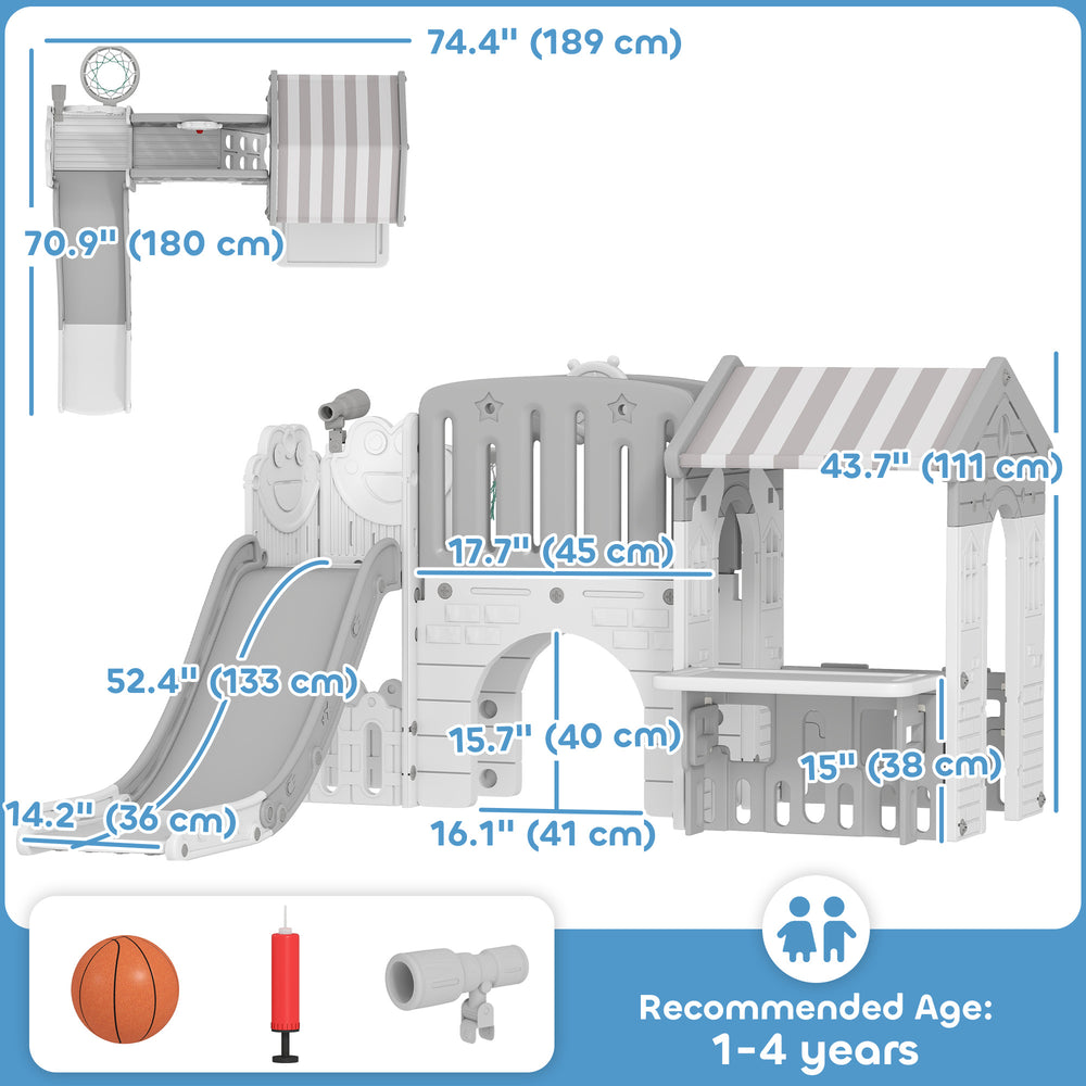 Qaba 3 in 1 Toddler Slide for Age 1-3, Kids Slide with Climber, Basketball Hoop and Ball, Giraffe Design, Blue