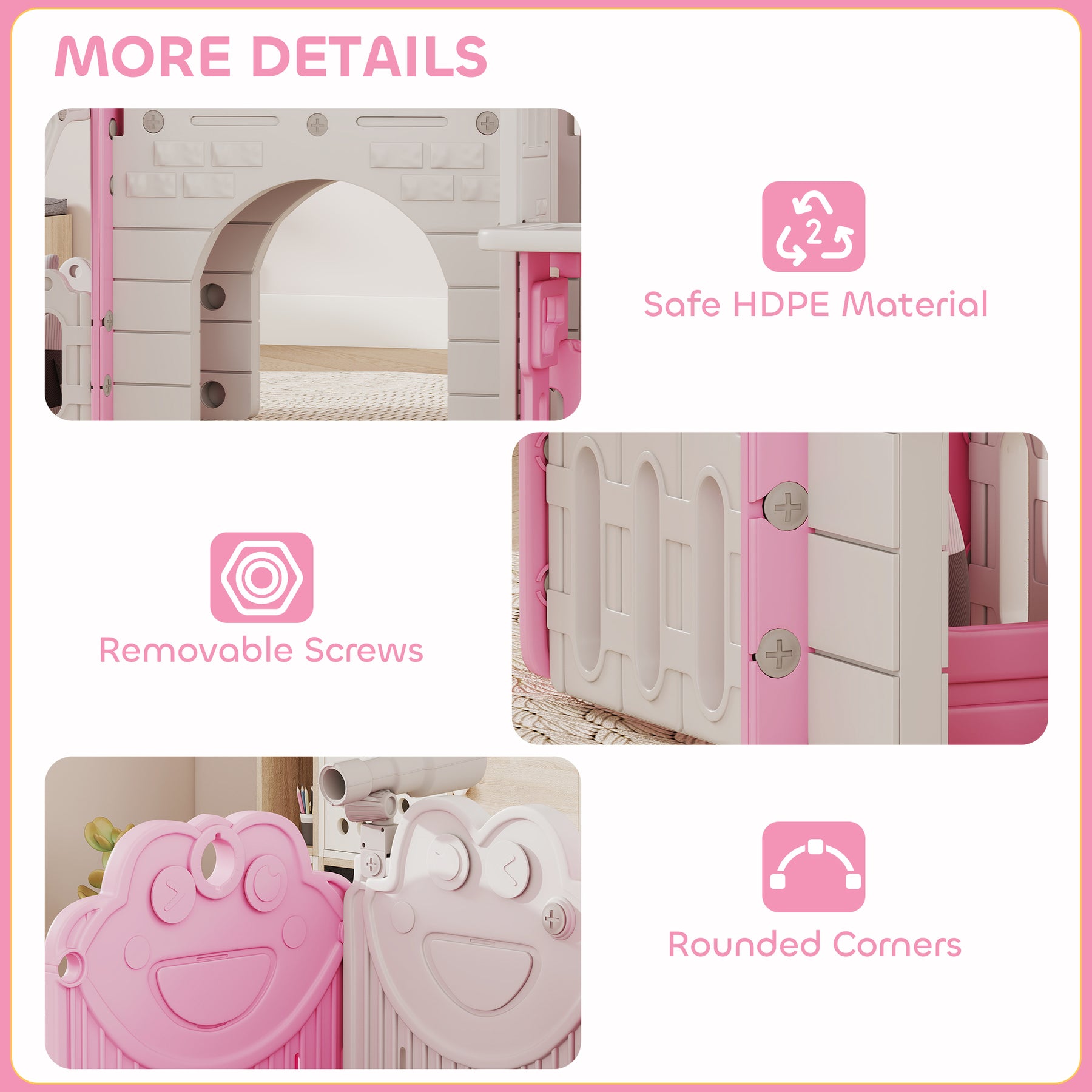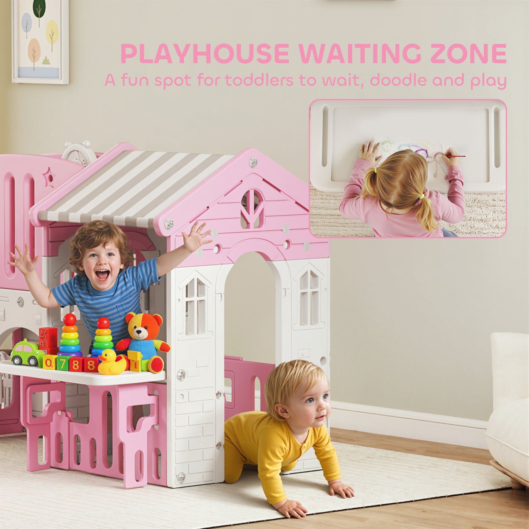 If you're looking for a safe and exciting way for your toddler to play indoors, imagine the joy of having a private playground right in your living room. The Qaba kids slide features a widened baby slide and robust, smooth construction for your peace of mind. This seven-in-one toddler indoor slide transforms any space into a creative hideout, offering endless adventures from the playhouse to the drawing board, joyful and secure fun.