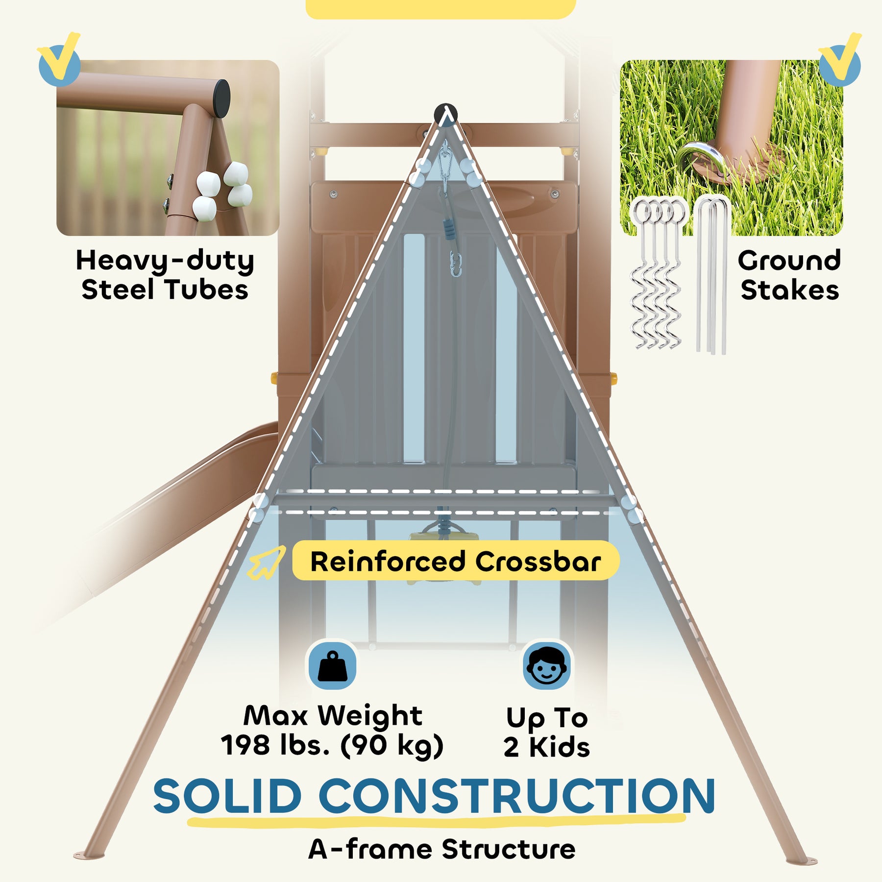 Transform your backyard into a thrilling adventure playground with the Qaba Play Structure! This outdoor swing set features a swing seat, an exhilarating slide, a climbing ladder and a shaded fort made from strong steel tubing for endless fun. Designed for little explorers aged 3-8, it promises safe, sunny days filled with laughter and play.