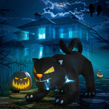 Create the ultimate spooky Halloween display in your own yard this holiday season with our large 6 ft long, inflatable crouching black cat from HomCom. Designed with ultra-durable, weather-resistant, waterproof polyester and featuring an internal white LED glow, this crouching cat will scare trick-or-treaters for years. Self-inflating in minutes, this display plugs into any standard outlet creating a super simple set-up process that anyone can do. Build the perfect holiday yard display this year and scare all the trick-or-treaters!