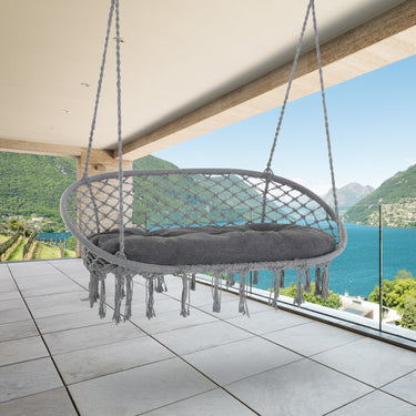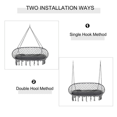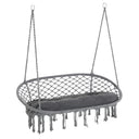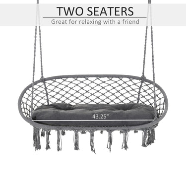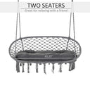 Outsunny Patio Hammock Chair 2 Seat, Hanging Rope Hammock Swing Chair with Metal Frame and Cushion, Large Macrame Seat for Indoor and Outdoor 396 lbs Capacity, Dark Grey