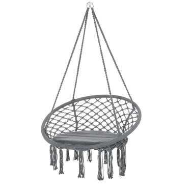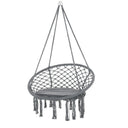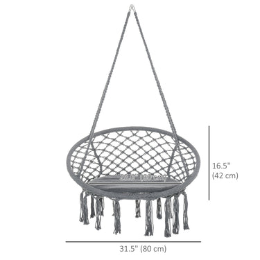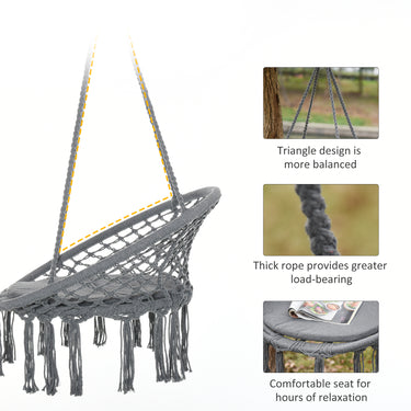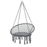 Outsunny Patio Hammock Chair, Hanging Rope Hammock Swing for Indoor & Outdoor Use with Backrest, Cotton-Polyester Blend, Fringe Tassels, Dark Grey