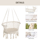 Outsunny Hanging Hammock Chair, Cotton Rope Porch Hammock Swing with Metal Frame and Cushion, Large Macrame Seat for Patio, Garden, Bedroom, Living Room, Cream White