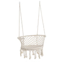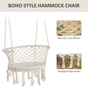 Add some elegance into your indoor or outdoor spaces effortlessly with this hanging rope hammock chair from Outsunny. Boho style chair is crafted into a spacious seat design, where the netting cotton rope forms the seat and the backrest with fringe tassels for an attractive and unique looking. Made from metal for strength and reliability, the front seat is slightly curved for comfortable sit, and with armrest offering support when needed.