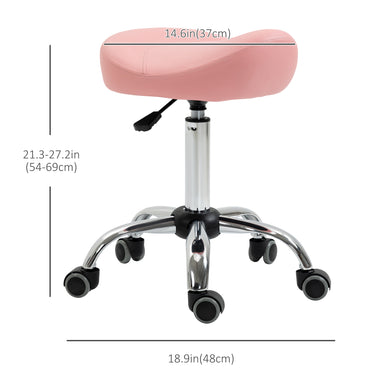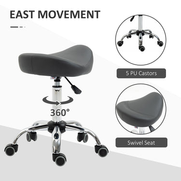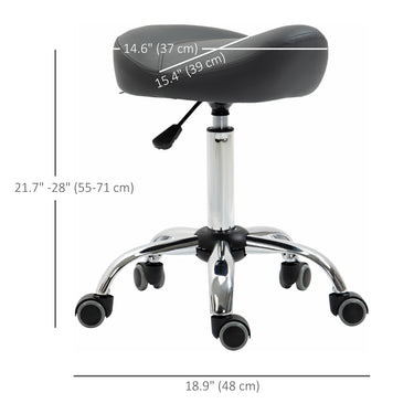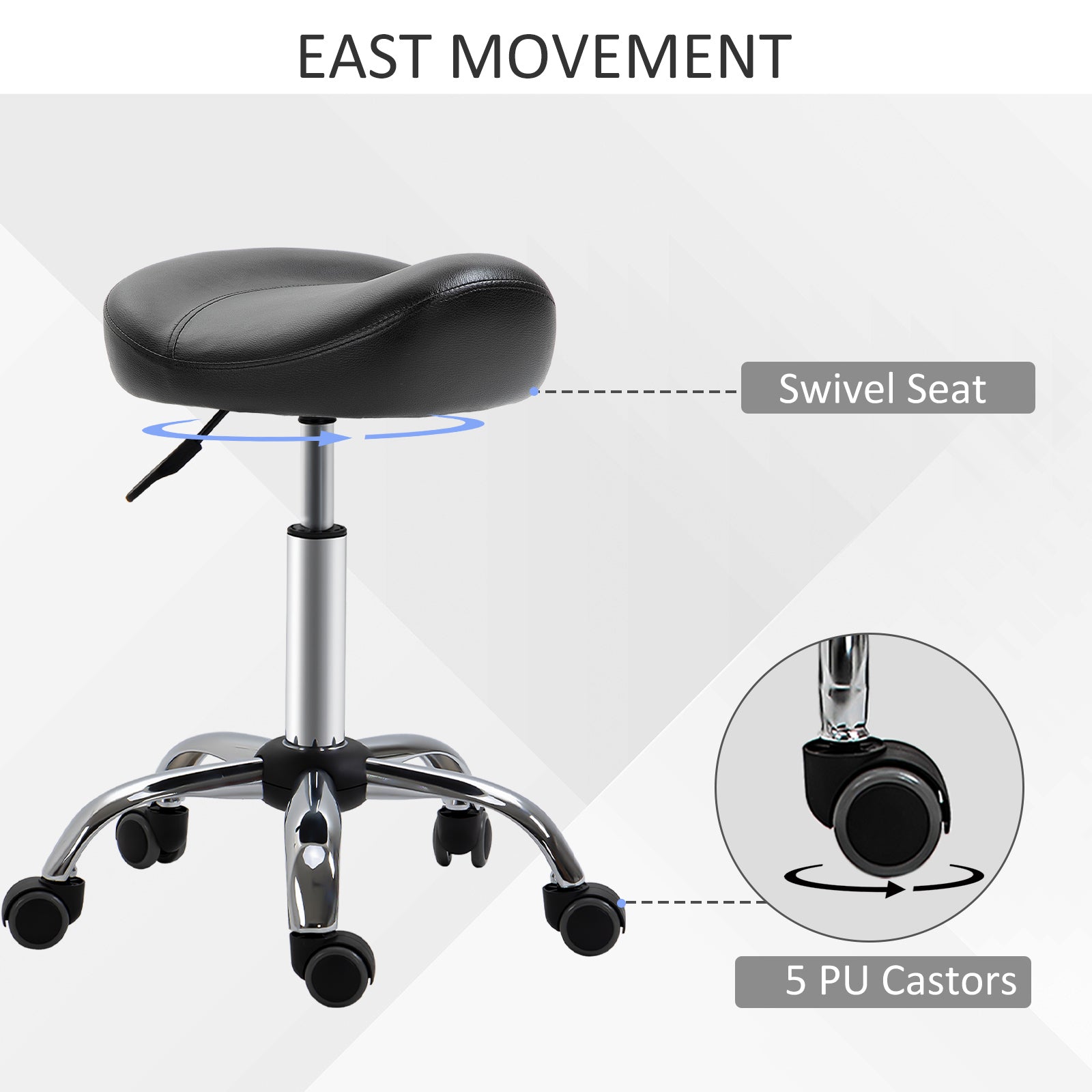 HOMCOM Saddle Stool, Height Adjustable Rolling Salon Chair with PU Leather for Massage, Spa, Clinic, Beauty and Tattoo, Black
