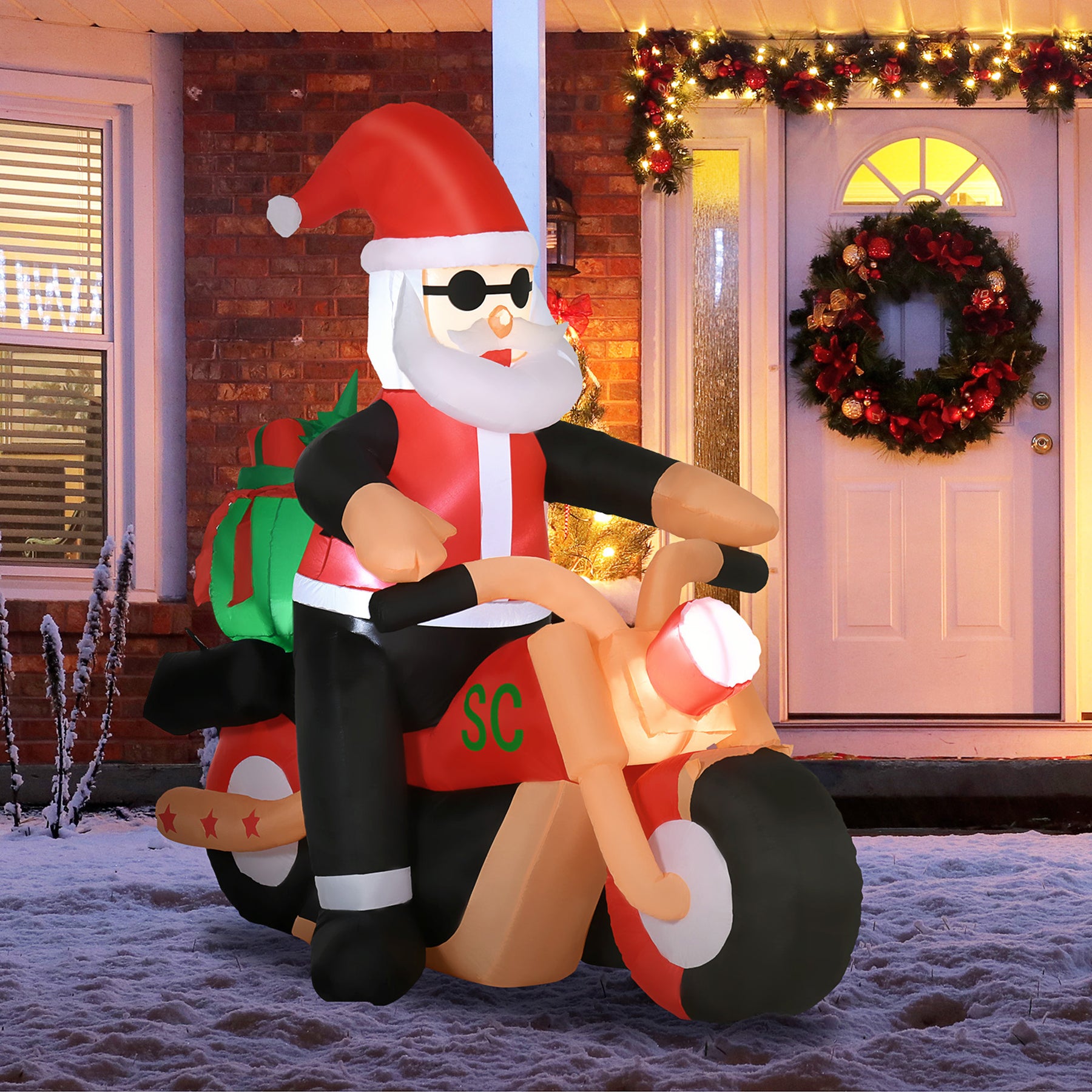 - • 5.5ft tall holiday inflatable display features a super cool Santa Claus riding a motorcycle