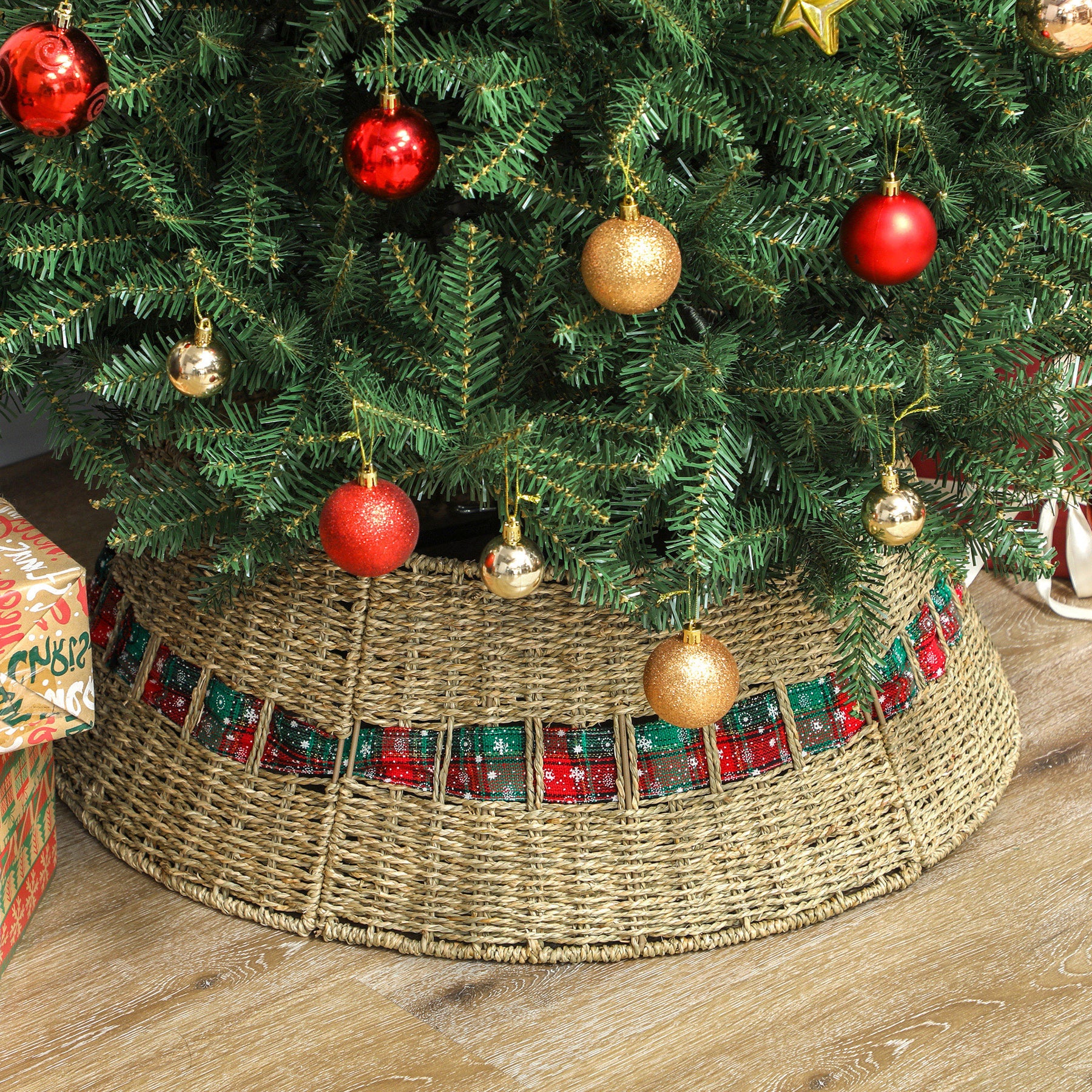 Step into the festive season with a touch of rustic elegance! The HOMCOM Christmas Tree Skirt combines hand-woven rattan and a charming red plaid ribbon, creating a stylish yet natural base for your tree. Not only does it enhance your decor, but it also keeps curious pets and little ones at bay, ensuring a tidy and safe holiday space.