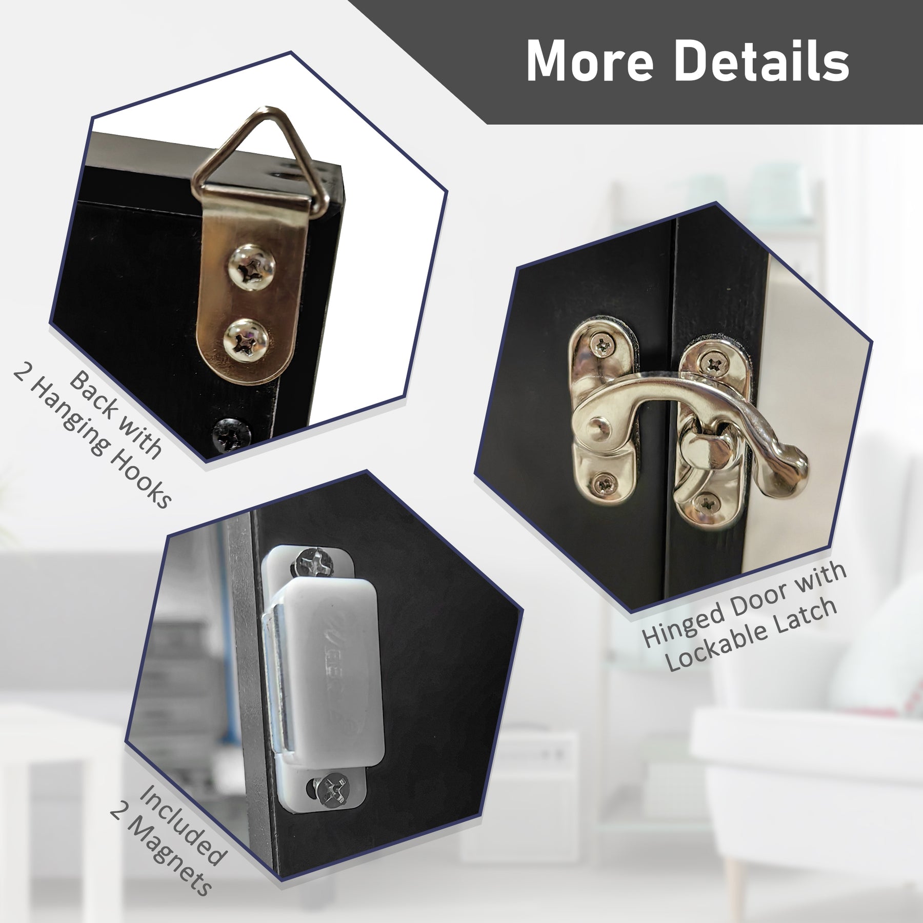 - • Hinged acrylic door with 2 magnets and a lock latch to keep your collectibles safe