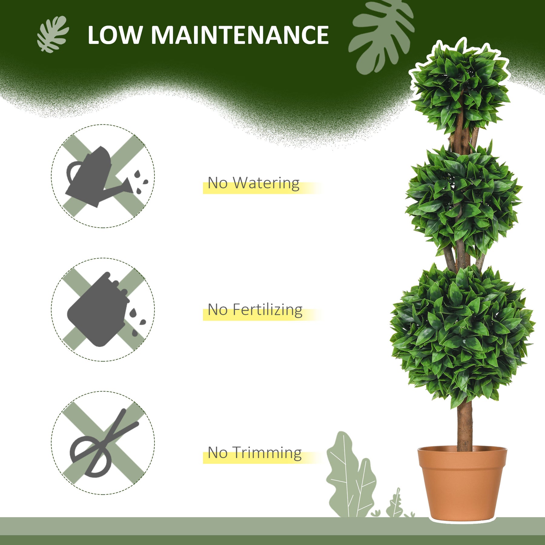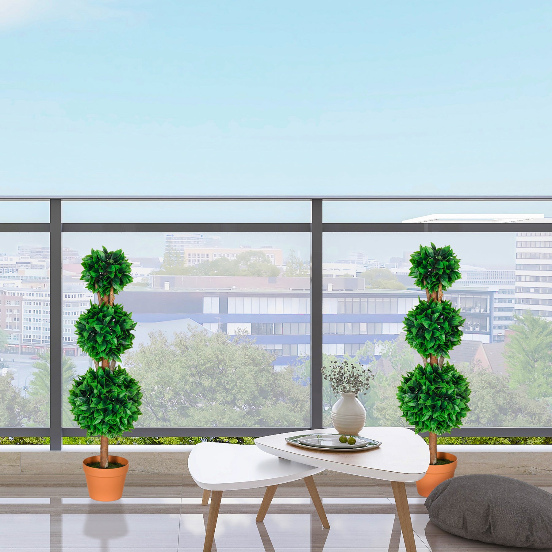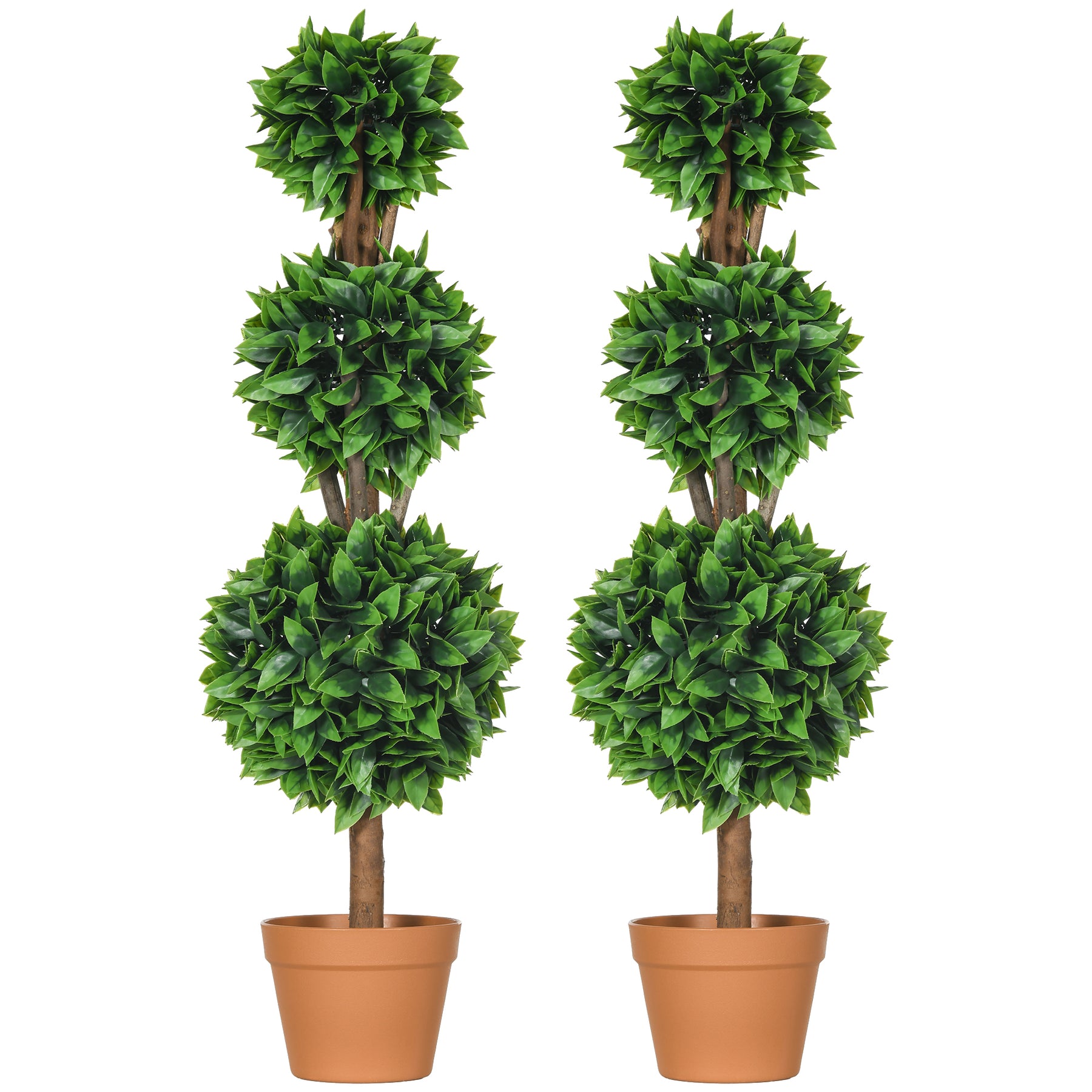 Bring the charm of greenery to your space without the hassle! Our set of 2 artificial trees from HOMCOM, featuring three ball-shaped boxwood trees with bay leaves, offer the beauty of real plants with the convenience of faux plants. Equipped with UV protection for outdoor placement and crafted from quality plastic, these HOMCOM fake trees in vibrant nursery pots promise an evergreen touch as your new favorite floor plants, all year round.