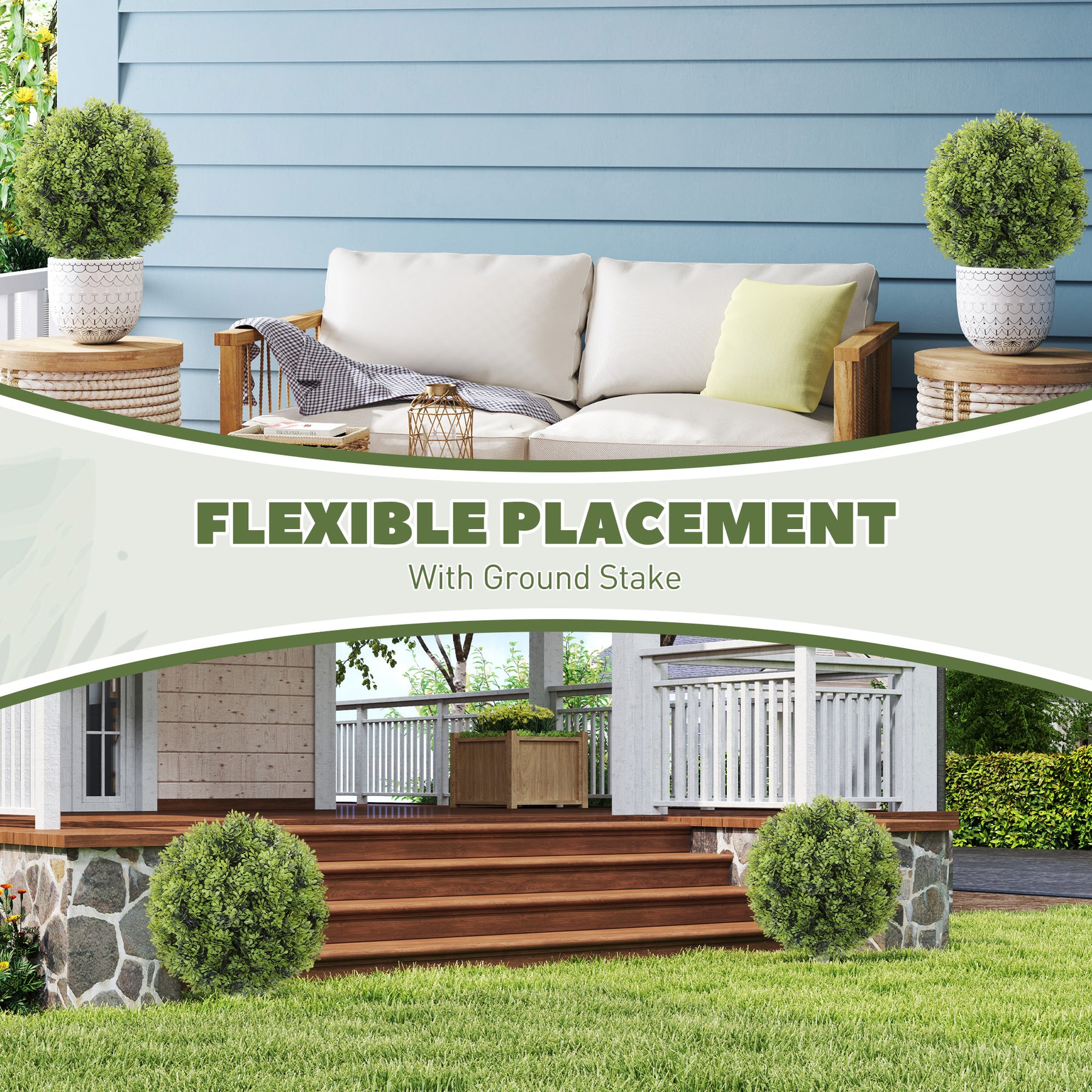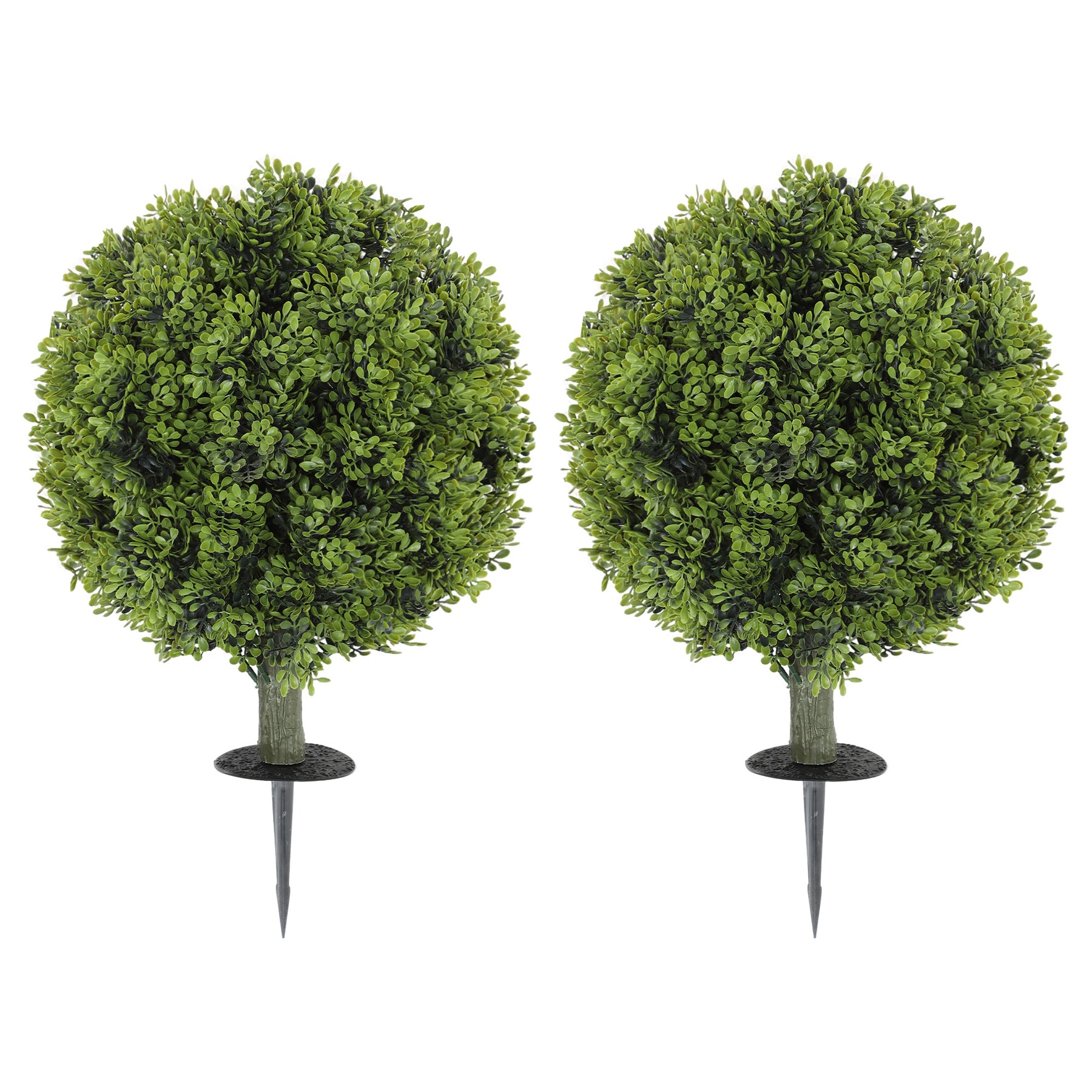Transform your space with HOMCOM artificial plants! Each artificial tree in this set of two boasts 410 lush boxwood leaves, offering a lifelike appeal without the upkeep. Suitable for any driveway, patio, or balcony, they're UV protected for lasting colour. Enjoy a green touch indoors or out, all year round, with these effortless, stylish faux plants.