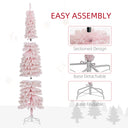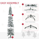 HOMCOM 6 Ft Snow-Flocked Artificial Christmas Tree, Slim Pencil Xmas Tree with Realistic Branches, Metal Base, Green
