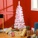 HOMCOM 7.5 FT Snow Flocked Artificial Christmas Tree, Pencil Xmas Tree with Realistic Branches, Auto Open and Steel Base, Pink