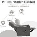 Make your life easier with this power lift recliner from HOMCOM. If you or your family are suffering from mobility issue, this power lift chair will be your practical choice. By a touch of button, you can go from a standing position to fully reclined without effort. Generously padded upholstery with soft linen-touch polyester fabric delivers exceptional comfort and relaxation. The heavy-duty tubular steel giving it a robust and solid foundation.