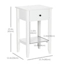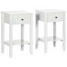 HOMCOM Side Table Set of 2, End Tables with Drawer and Bottom Shelf, 2-tier Nightstand for Bedroom, Living Room, White