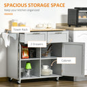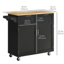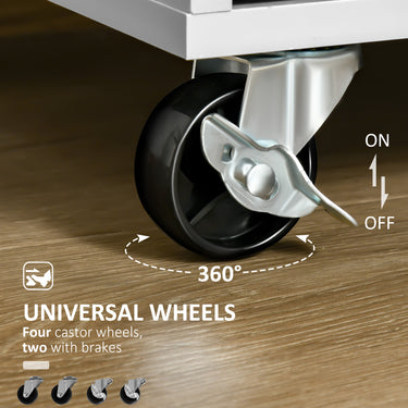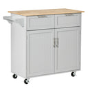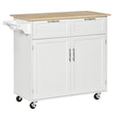 HOMCOM Rolling Kitchen Island with Storage Drawers, Kitchen Cart with Rubber Wood Top, Cabinet & Towel Rack, White