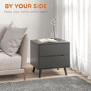 Do you need more storage space in your bedroom or other living areas? If so, this HOMCOM side table with storage is the solution. The pure white frame and natural tone of legs create a modern style, something different for your home and office space. Two drawers offer room for storage, with handles to open and close quickly. Complete with solid and supportive pine wood legs. Move the nightstand where you need it. It's always at your service.