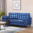 HOMCOM Mid-Century Sofa, Couch with Button-Tufted Back Cushion, Velvet Feel Fabric Upholstery, 2 Cylindrical Pillows and Rubber Wood Legs for Living Room, Dark Blue