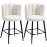 HOMCOM Faux Cashmere Bar Stools Set of 2 Counter Height Bar Stools with Back for Home Kitchen, 20.5"x19.7"x36.6", Cream