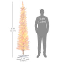 HOMCOM 7' Prelit Christmas Trees, Pencil Artificial Christmas Tree with Colourful Surface Tips, Colourful LED Lights, White