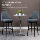 HOMCOM Extra Tall Bar Stools Set of 2, Modern 360° Swivel Barstools, Dining Room Chairs with Steel Legs Footrest, Charcoal Grey