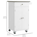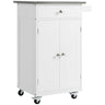 HOMCOM Kitchen Cart, Small Kitchen Island, Stainless Steel Top Utility Trolley on Wheels with Storage Drawer for Dining Room, Kitchen (White)
