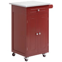 This kitchen cart on wheels is an ideal option for your home parties. The stainless steel tabletop is easy to clean and spacious enough to prepare your ingredients. Complete with wheels, this portable kitchen island can roll from room to room for convenience. A handy drawer, a concealed cabinet, and a towel rack provide ample storage for your kitchen and dining essentials. Bring a functional helper to your kitchen space with this bar cart.