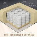 - • Overstuffed, high-density foam padding with a pocket spring system offers a cozy experience