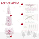 HOMCOM 6ft Flocked Christmas Tree, Pencil Artificial Christmas Tree with Realistic Branches, Pink