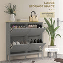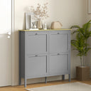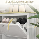 Meet your storage needs effortlessly with our HOMCOM hallway cabinet. Compact and versatile, it offers 4 flip doors with adjustable shelves for your shoe collection. The sleek countertop serves as a stylish display for decorations. Designed with an anti-tipping feature, it's a smart choice for homes with pets. Elevate your organization game seamlessly.
