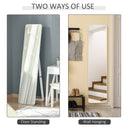 The stand up mirror from HOMCOM will help you make sure to reflect your style! The full-length design allows you to have a head-to-toe view of your outfit. It will ensure your outfit is on point from bottom to top. Wall-mounted design helps you save floor space. The wall mirror is suitable for bedrooms, bathrooms, dressing rooms, etc. The frame is constructed of aluminum alloy, ensuring a long life cycle. The metal frame and silver mirror combination add luxe decor to your room.