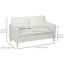 HOMCOM 56" 2 Seat Sofa, Modern Love Seats Furniture, Upholstered 2 Seater Couch with Side Pockets, Solid Steel Frame, White
