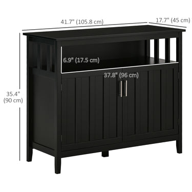 With this sideboard cabinet from HOMCOM, you can put an end to disarray and tuck clutter away. The moulding on the doors adds a modern touch to your living space, and two cabinets provide plenty of storage space for your daily accessories and utensils. With two adjustable shelves that move to meet your needs, you can personalise your storage space.