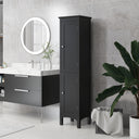 - • Enclosed cabinets neatly arrange your collection of bathroom essentials
