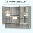 kleankin Wall Mounted Bathroom Medicine Cabinet with Mirror and Adjustable Shelves, Grey