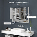 Store all your bathroom essentials, while keeping your must-have toiletries organised - do it with this kleankin bathroom cabinet. A generous size of four different sections makes this bathroom medicine cabinet great for shared households. The three upper areas are fitted with a mirrored door, keeping everything protected. The mirrors also mean you can get ready in the bathroom whenever you want. Open bottom shelf means you can grab things quickly and easily. Mount on the wall to save space.