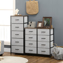 - • Five foldable fabric drawers for plenty of holding and organising room